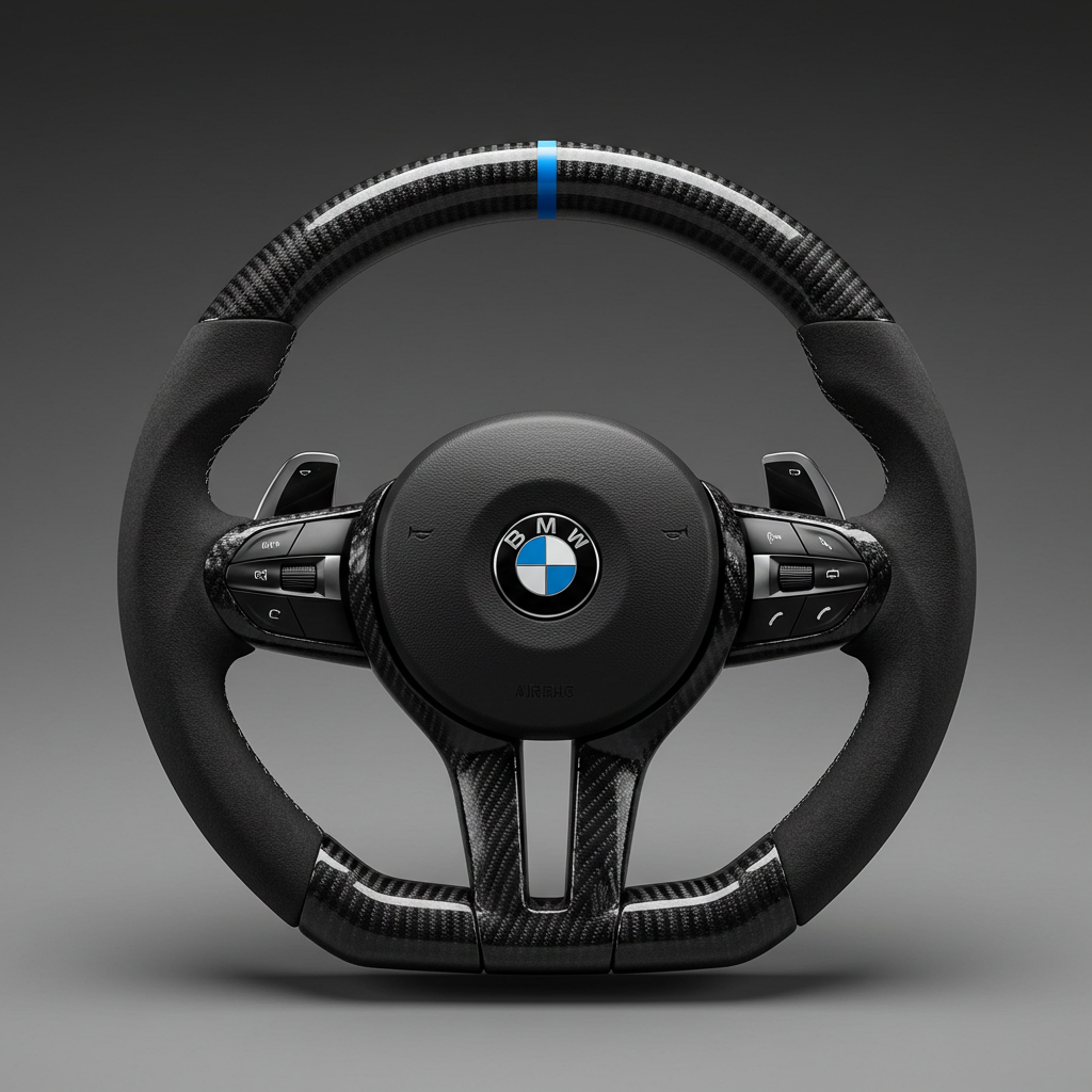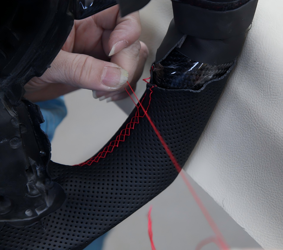 Premium leather or Alcantara is skillfully hand-stitched onto the grip sections, adding a luxurious tactile feel and personalized aesthetic.