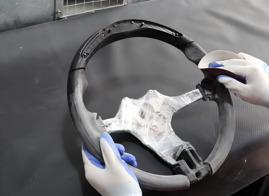 The process begins with precise foaming and shaping of the steering wheel core to create the desired ergonomic contours and design.